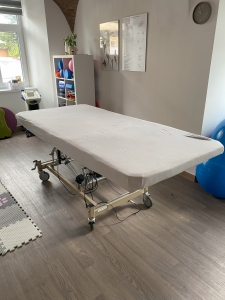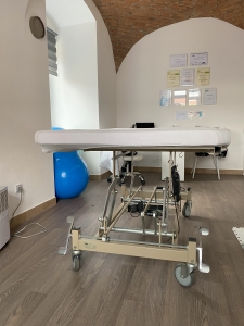 Prodám rehabilitační lehátko (Vojtův stůl), s elektrickým pohonem na ovládání výšky. Kolečka, aretace. Bez otvoru na obličej. Materiál – béžová koženka Délka: 203 cm Šířka: 93 cm Max. výška: 85 cm Hmotnost: cca 150 kg Cena: 14.000 Kč Místo: Plzeň Bolevec