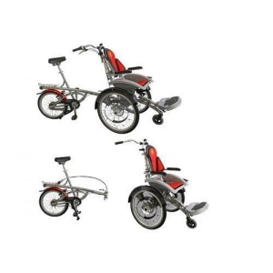 Invalidní vozík je variabilní, nastavitelný a lze ho od kola oddělit a použít jako klasický invalidní vozík.