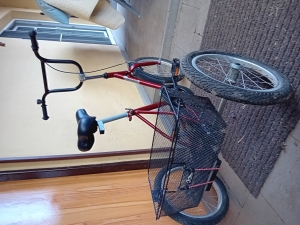 Prodám juniorskou tříkolku 115 J včetně příslušenství. Tříkolka je v dobrém technickém stavu. Tříkolka má vlastní rám s koly 16“. Součástí je košík Nosnost 45kg, věk asi 6-13let, postava 110 až 150 cm.