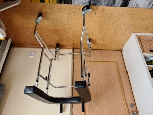 Prodám mobilní chodítko s výškově nastavitelnou podpažní oporou ve tvaru písmene U. Chodítko je vybaveno pěnovými ručkami, 4 kolečky s brzdami, odnímatelným sedadlem a držákem na infuzní stojan. Chodítko je ještě v záruce, pořízeno bylo koncem ledna 2023, nebylo používáno (pořizovací cena 4100,- Kč). Parametry: celková šířka 63 cm celková hloubka 80 cm rozměry sedáku 56x20 cm nastavitelná výška 101-124 cm nosnost 100 kg
