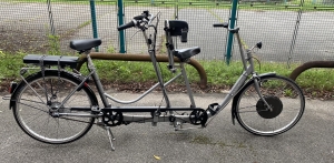 Prodáváme elektro dvojkolo. Je nevyužité. Za rok jsme jeli dvakrát a syna to moc nebaví. Bez vad, jako nové. Profesionálně repsované ve firmě Krossmedicals: nové pláště, repasovaná baterie, seřízení. Fakturu mám. Pro dva dospělé! Nízký rám pro snadnější nastupování. Kolo je ovládáno zadními řidítky. Pomocí přepínatelné volnoběžky můžete určit, zda spolujezdec šlape, je nucen šlapat, nebo má volnoběžku. Tak můžete při jizdě rehabilitovat. Převodovka v zadním středu : 5-ti stupňová, SRAM Kola 28 palců, stojánek, zámek zadního kola. Li-ion baterie s indikací nabití, vyjímatelná se zámkem Motor: crystalyte HT 250 W 36 V v předním kole Bederní opěrka spolujezdce. Fixace nohou (páskem, nebo na suchý zip) POUZE OSOBNÍ ODBĚR! Praha 13 - Stodůlky, případně Jičín (o víkendu).