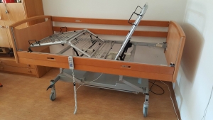 Repasované elektricky polohovatelné lůžko je určeno pro pacienty dlouhodobě upoutané na lůžko. Změna polohy ležícího pacienta je vhodná nejen ze zdravotních důvodů (snižuje riziko vzniku otlaků a zlepšuje prokrvení tělních partií), ale umožňuje také snadnější vykonávání každodenních činností. Je vhodná nejen pro domácí péči, ale splňuje i speciální požadavky k použití v pečovatelském či terapeutickém zařízení. Bezpečnostní integrované postranice zabraňují pádu z lůžka, lze při vhodně zvoleném nastavení výšky použít i pro nácvik chůze. Nosnost až 150 Kg. Délka 215 cm, šířka 102 cm.