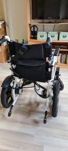 Vložil/a Kateřina Linhartová, Pá, 23/02/2024 - 15:40Prodám čtyřkolový elektrický invalidní vozík klasického typu. Pomocí joistiku na ovládacím panelu volíte rychlost (5 stupňů) a směr pojezdu. Snadné nasedání, složení je shodné jako u klasických invalidních mechanických vozíků uchopením sedáku uprostřed a jeho zvednutím. Nosnost 110 kg, baterie olověná, gelová, bezúdržbová, nabíječka AC100-240V50/60HZ, výstup: 24V/3A, řídící jednotka Fly Brother, dojezdová vzdálenost na 1 nabití 20 km, doba nabíjení 6-8 hodin, svahová dostupnost 12st., Používán cca 2 roky, cca rok a půl nevyužíván, bude třeba dokoupit novou baterii.