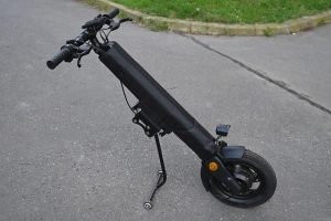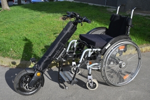 Používali jsme ho na skládací invalidní vozík, uchycený ke svislé konstrukci při rozteči cca 40 cm. Mezikus umožňuje různé způsoby uchycení včetně nastavení velkého rozsahu šířek vozíku. Má 3 rychlostní režimy a na ten nejvyšší jede skoro 30 km/h.